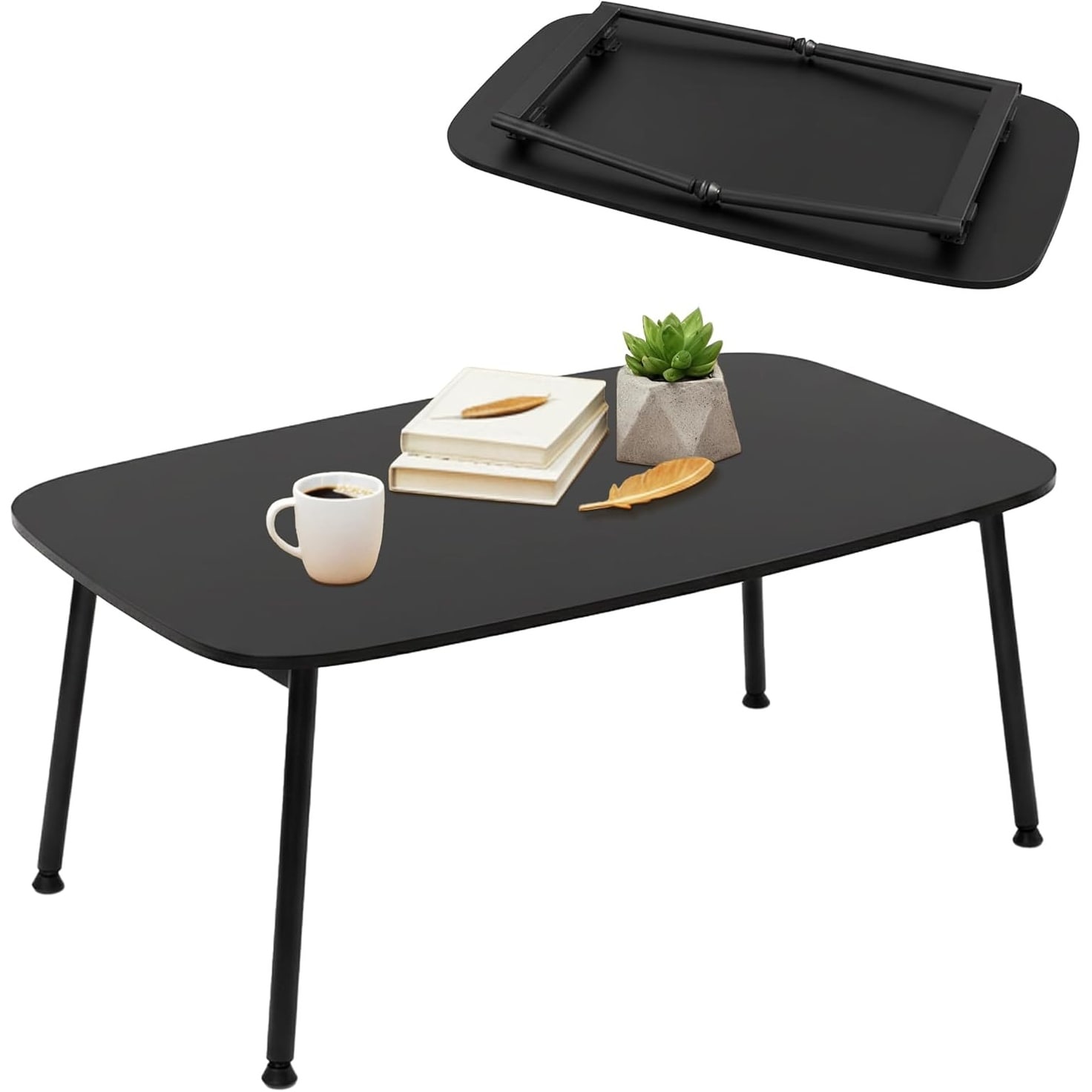 Folding Coffee Table, Portable Floor Table for Living Room, 32''L x 16''W x 15''H, Black