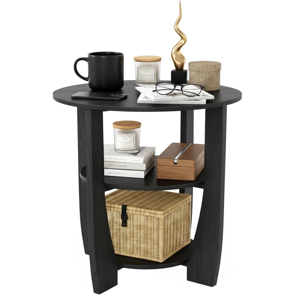 3-Tier Round End Table with Storage Shelf, Compact Side Table for Living Room, Bedroom, or Small Spaces - 19.7" D x 21.7" H