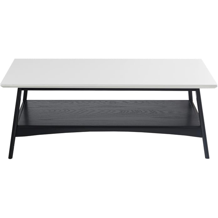 Coffee Table with Storage, Solid Wood Frame & Legs, Minimalist Living Room Accent Furniture - 48" x 24" x 17", Off-White/Black