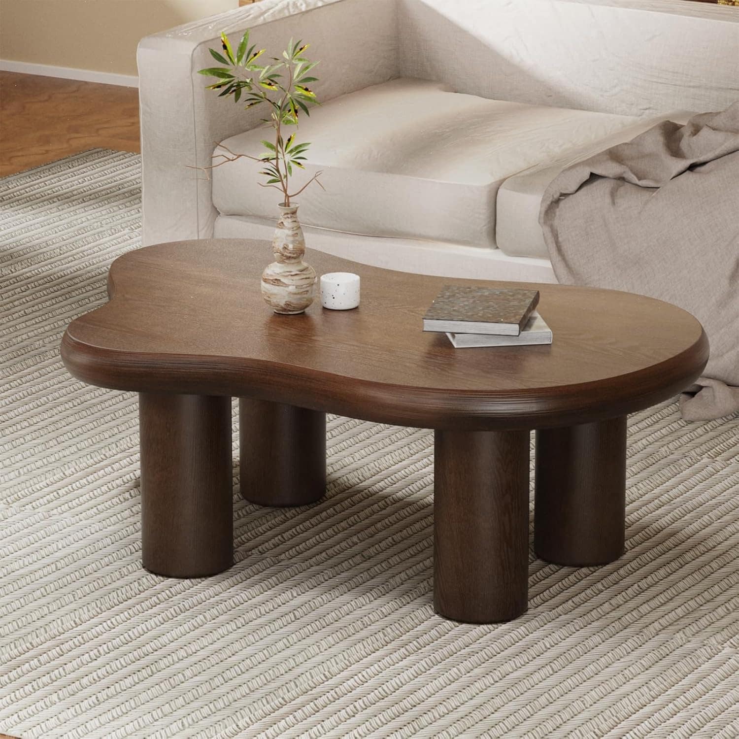 Modern Cloud Coffee Table, Irregular Simple Design for Small Spaces, Living Room & Home Office, Brown, 46" W X 31" D X 15.3" H