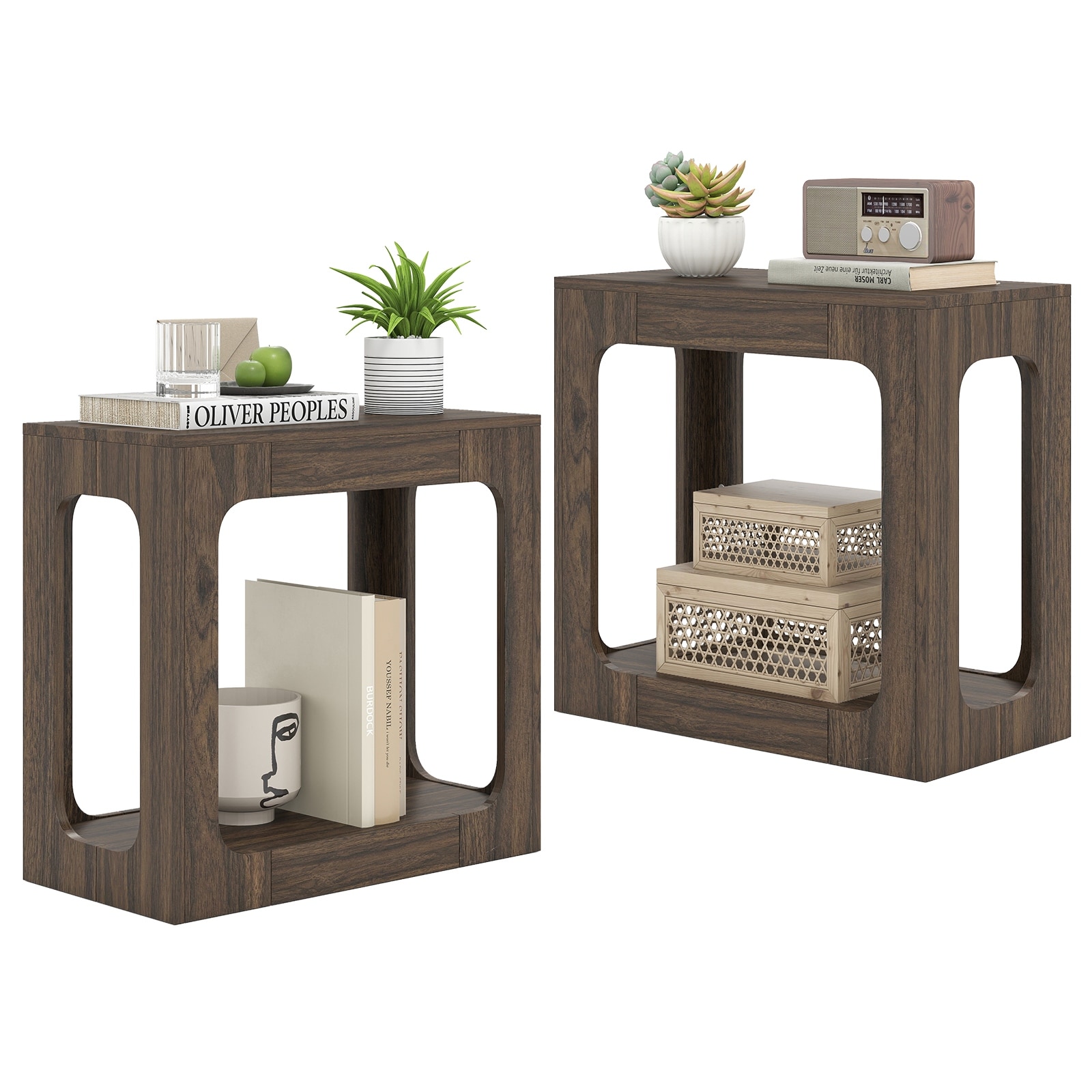 Costway 1/2 PCS 2-Tier End Table with Storage Shelf Hollow-out Design