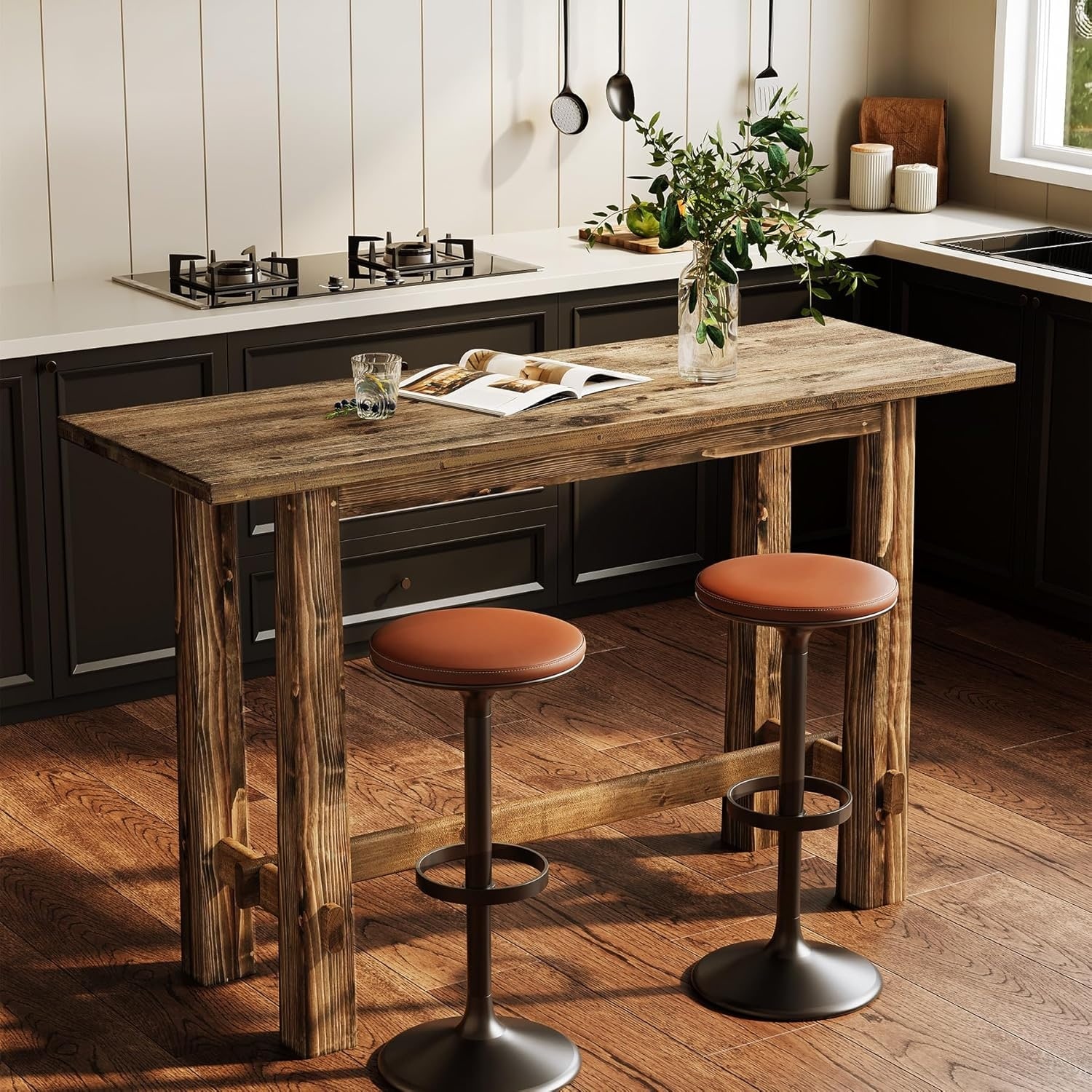 63" Solid Wood Bar Table, Bar Height Pub Table for Kitchen, Home Bar