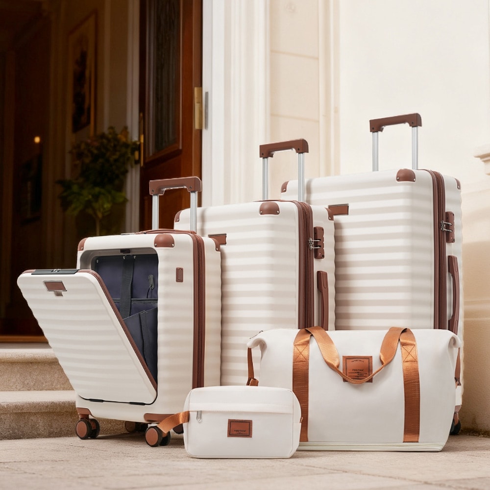 Durable ABS Luggage Sets 5 Piece with Front Opening, Expandable Hardside Suitcases with Spinner Wheels, TSA Lock and USB Ports