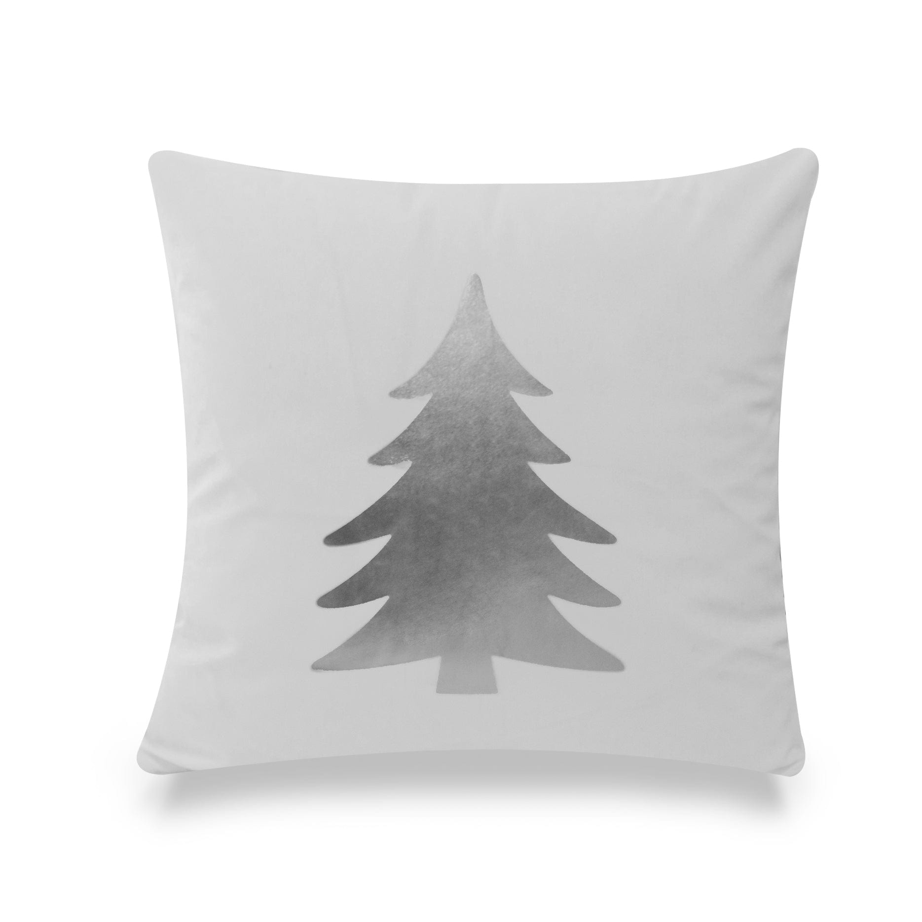 Silver Foil Christmas Tree On White Pillow Cover