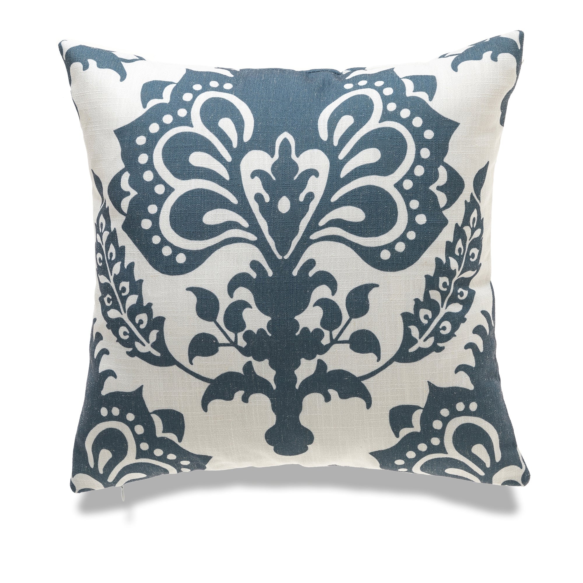 White With Navy Blue Print And Polyester Insert Pillow