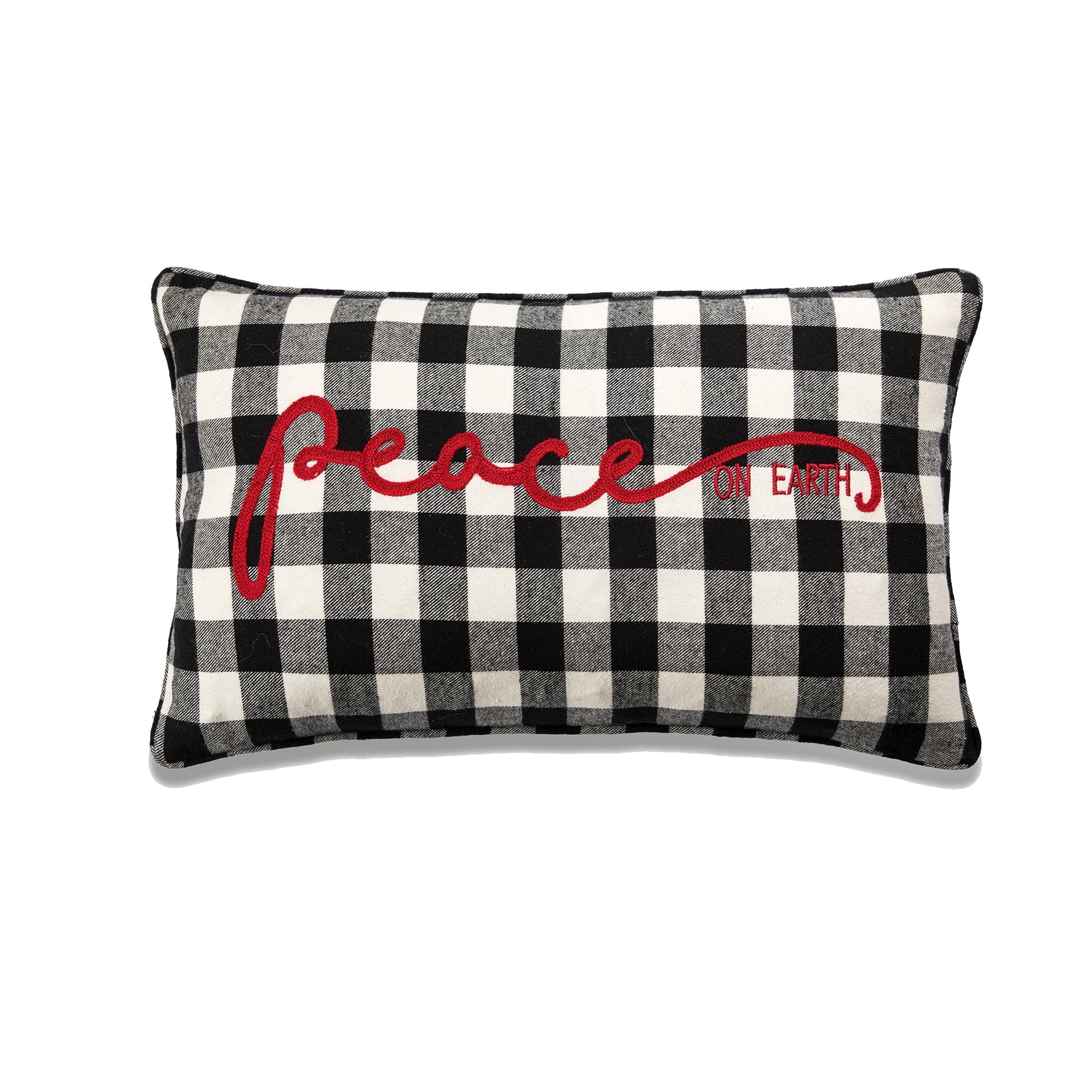 Peace On Earth On Black And White Buffalo Check With Polyester Insert Pillow