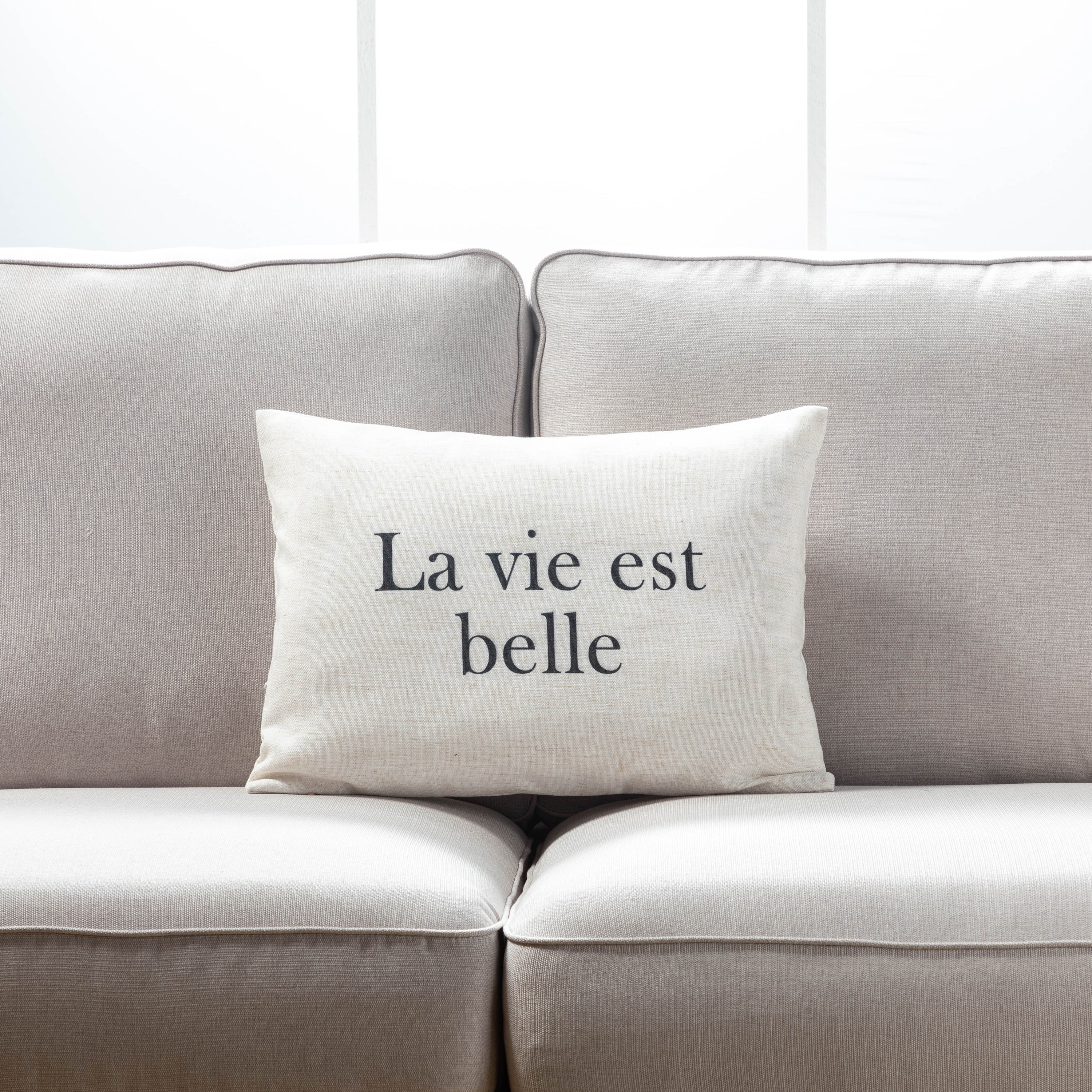 La Vie Est Belle Text On White Pillow Cover