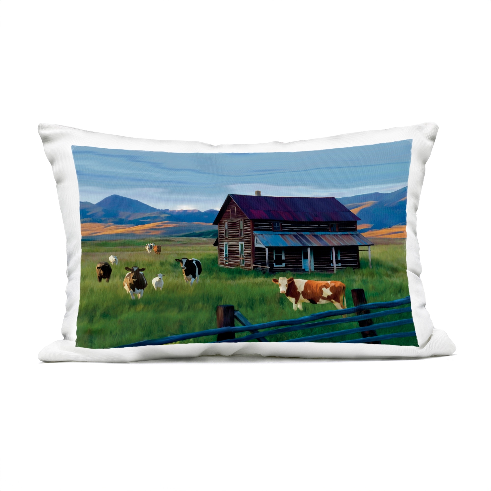 Stupell Grazing Cattle at Solitary Cabin Printed Outdoor Throw Pillow Design by Renel Peters