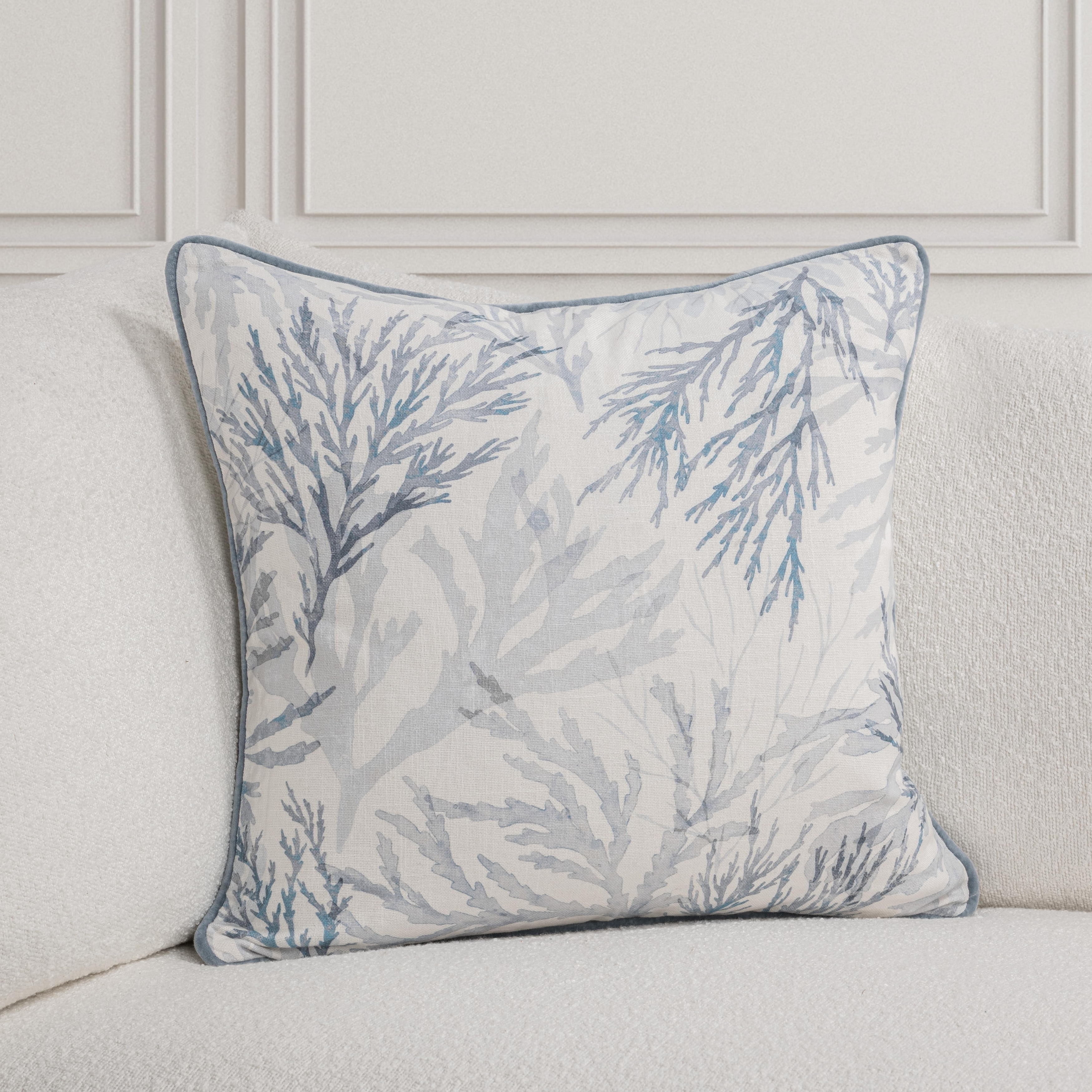 Mixed Flower Delight Indoor/Outdoor Reversible Throw Pillow White and Blue