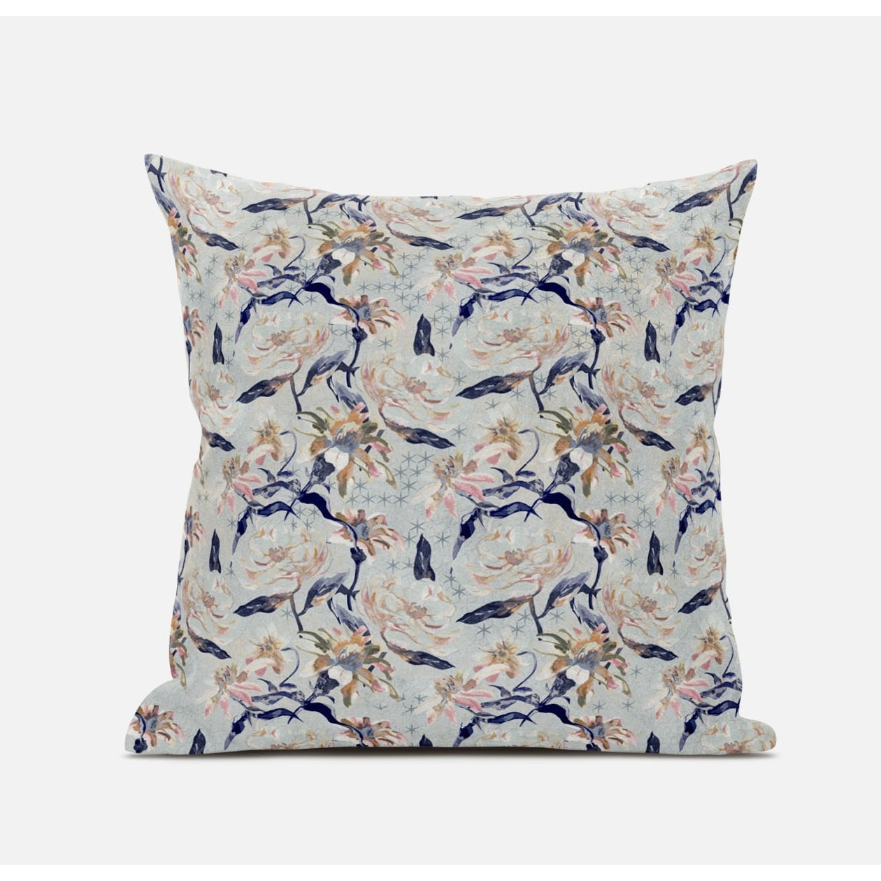 16" X 16" Blue Broadcloth Floral Throw Pillow