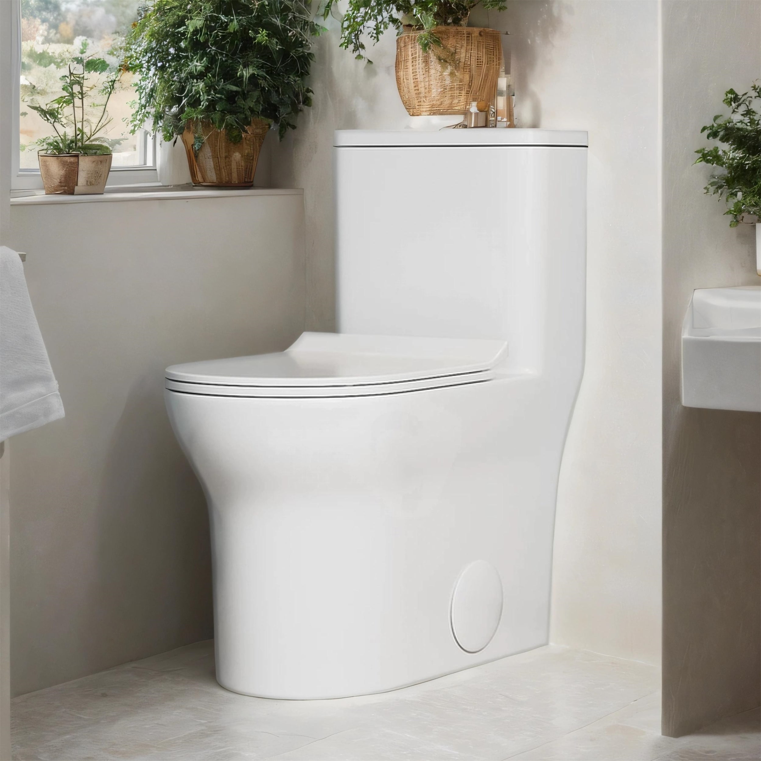 One-Piece Elongated Toilet, Dual Flush 1.6/1.1 GPF w/ Soft-Close Seat