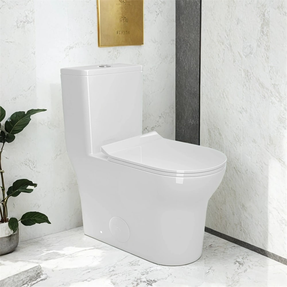 Modern One-Piece Elongated Toilet with Soft-Close Seat, Comfort Height & Siphon Flush, Quiet & Powerful Performance - Ceramic