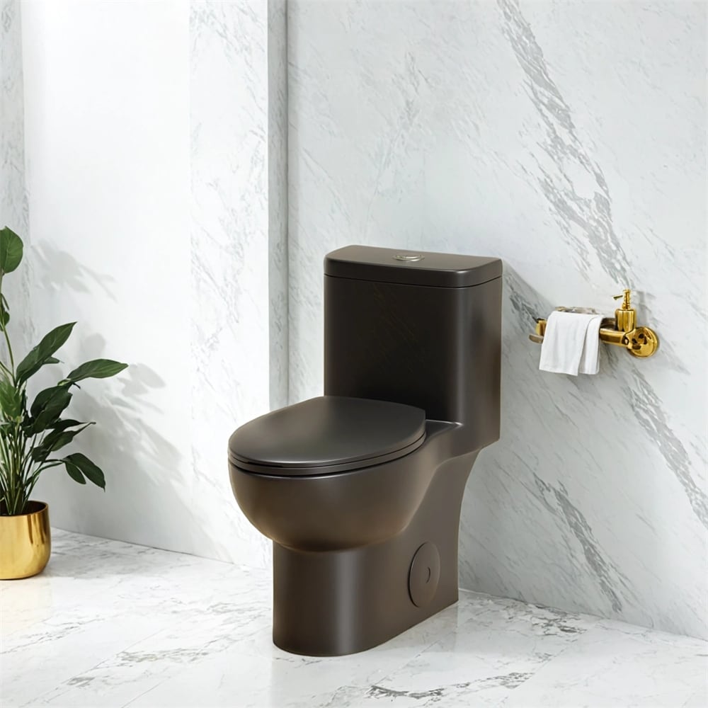 Angers One Piece Elongated Toilet Dual Vortex Flush 1.1/1.6 Gpf With 10" Rough-In, Matte Black - 27" x 15.15" 31.2"
