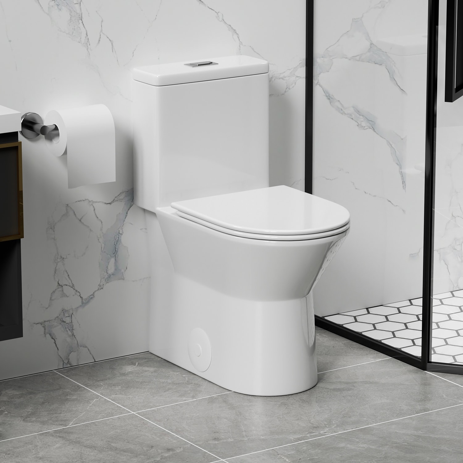 One-Piece Toilet, 17.5" ADA Height, Elongated Side Flush, 1.28 GPF, MAP 1000g, 12" Rough-In, Sleek White - 17.5"H-A