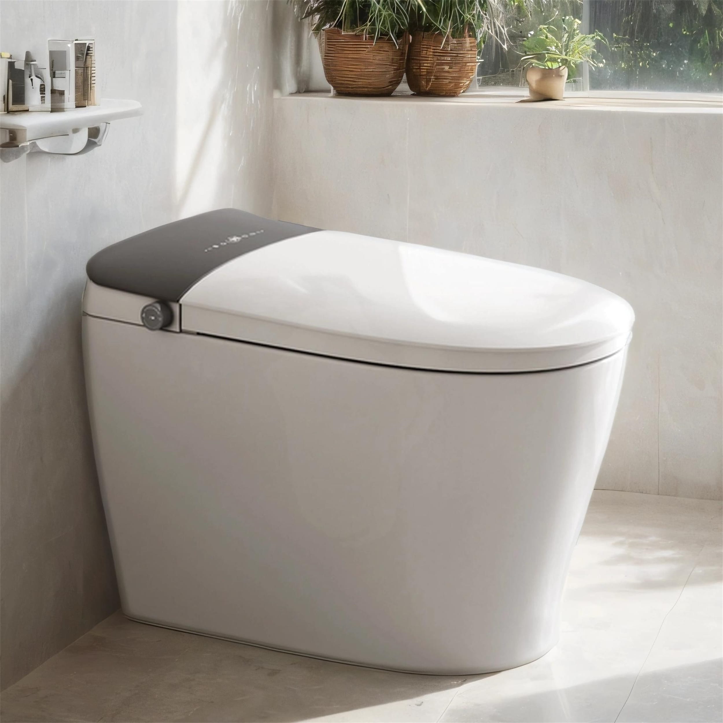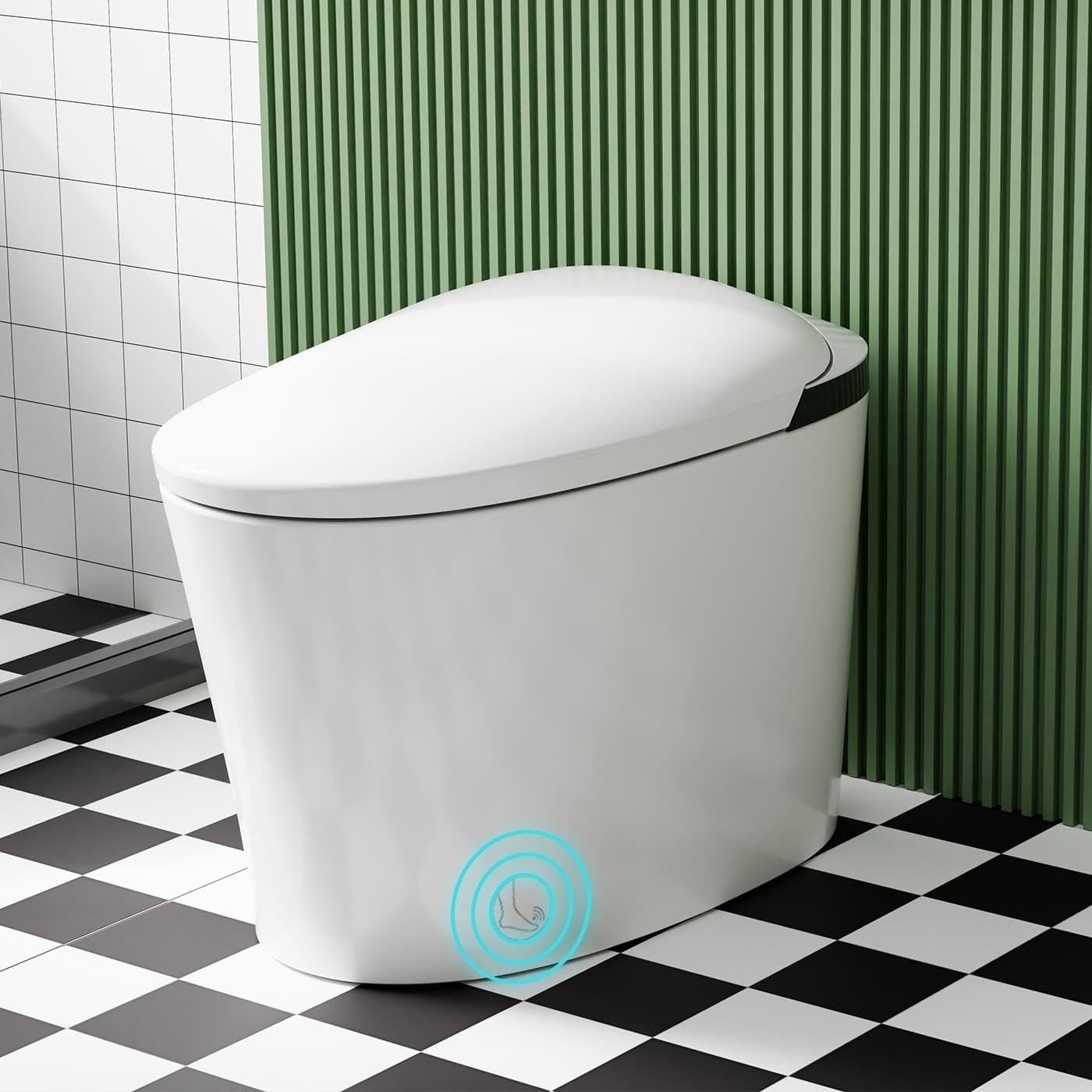 Smart Toilet with Bidet Seat, Foot Sensor, Auto Flush, Heated Seat, Night Light & Remote Control, White