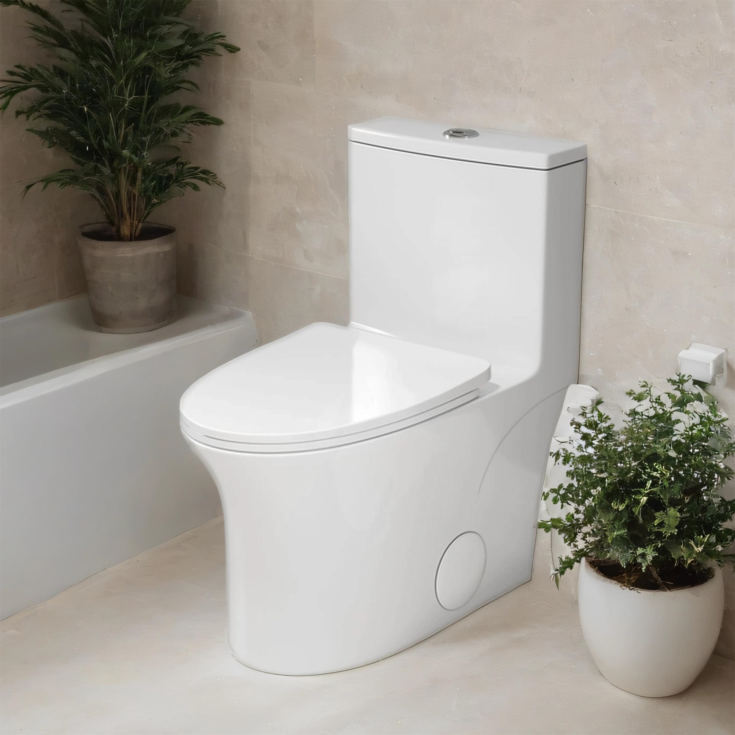 One-Piece Elongated Toilet, Dual Flush 1.6/1.1 GPF w/ Soft-Close Seat
