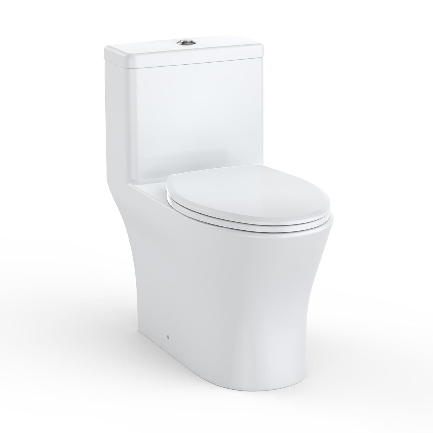 One-Piece Elongated Toilet, V-Cover, Soft Close Seat, Left-Hand Lever, Comfortable Bathroom Height, White