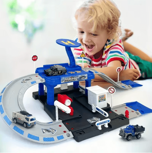 Interactive City Car Track Set With Parking Lot Road Play System medium Blue Track