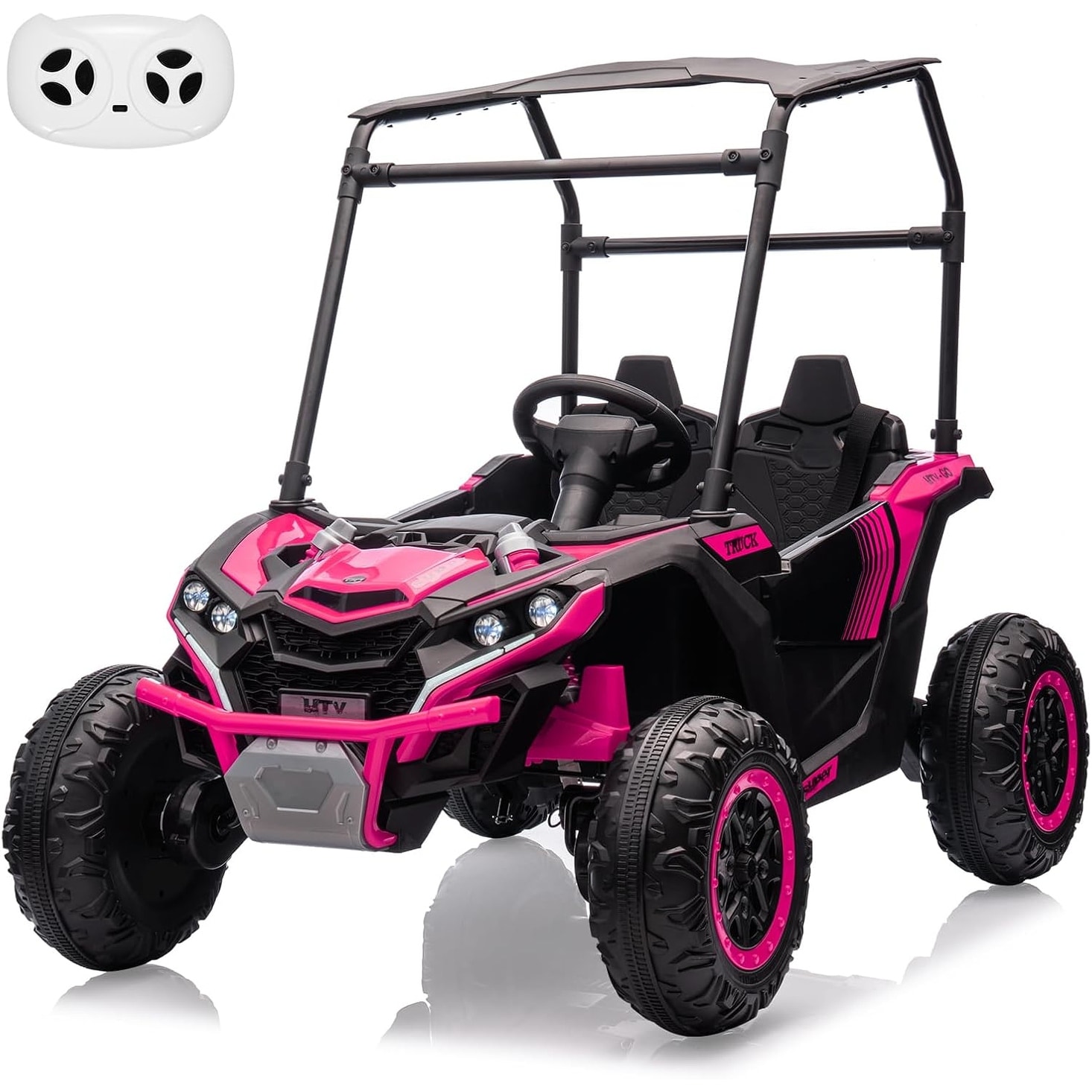 24V 4WD 2-Seater Ride-On UTV for Kids w/Sun Shade, 4×75W Motors, Remote Control, LED Lights, Music, Shock Absorbers