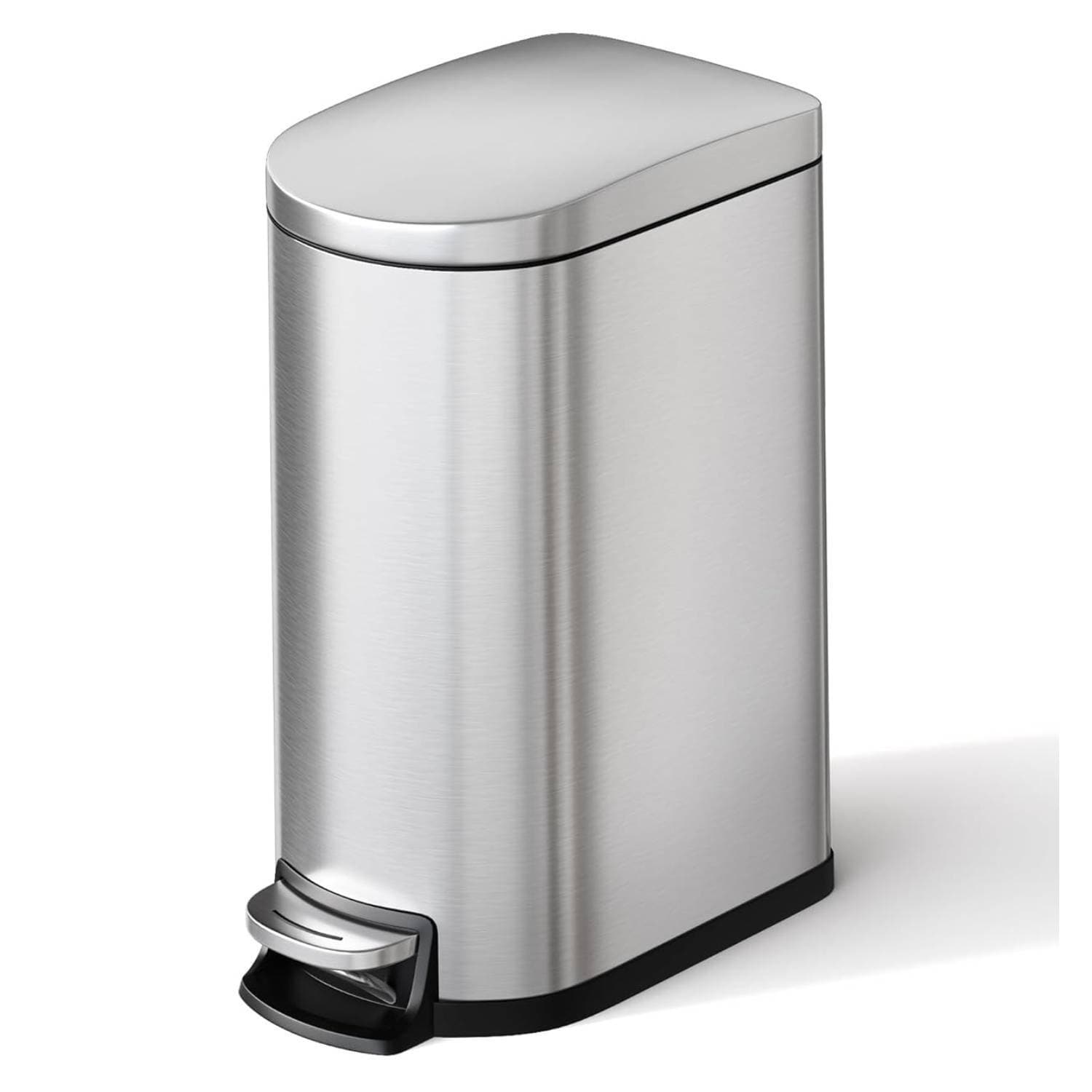 2.6 Gallon Stainless Steel Slim Trash Can, Step-on Garbage Bin for Narrow Space, Kitchen, Bathroom, Office
