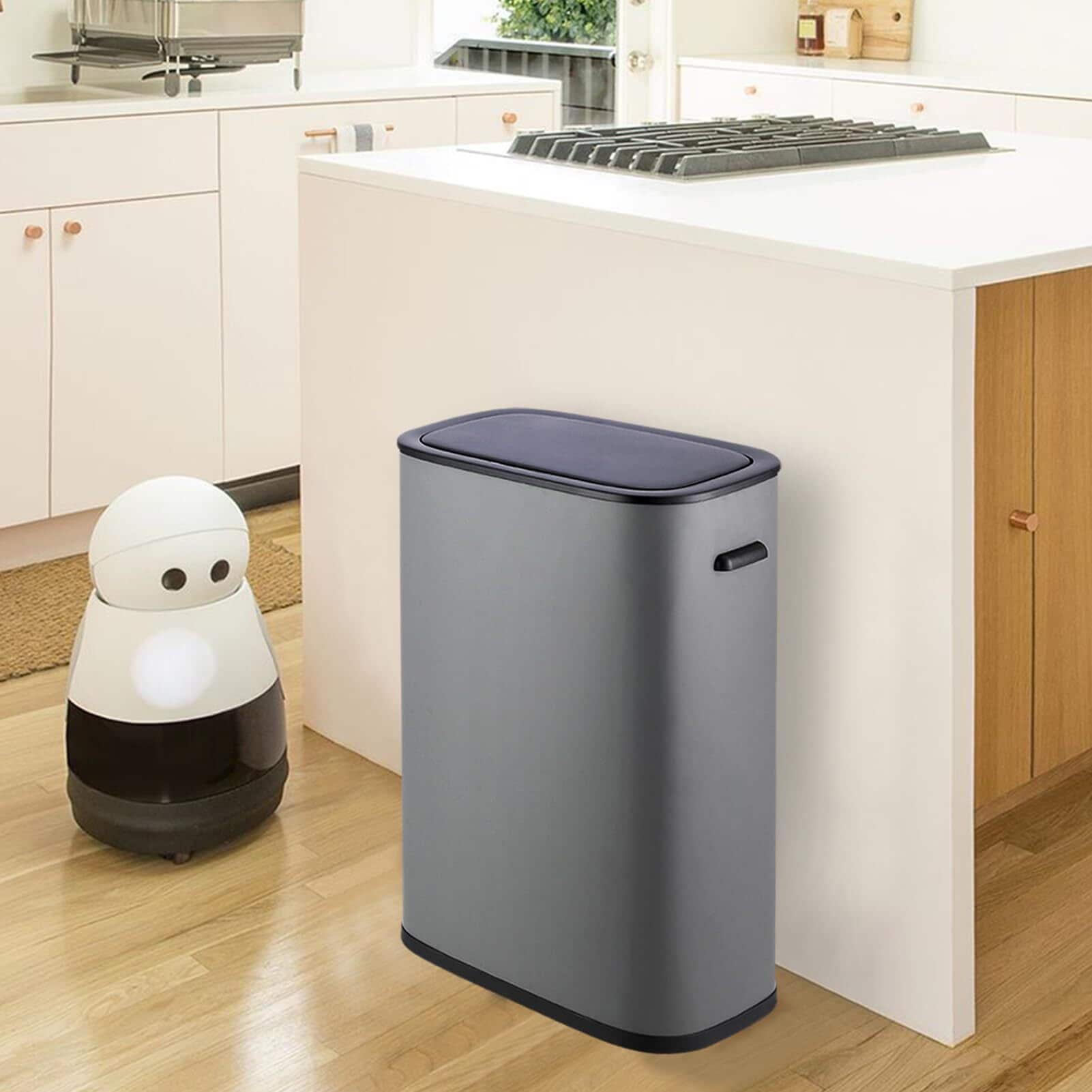 happimess Tammi Kitchen 14.5-Gallon Slim Metal Push Button Trash Can