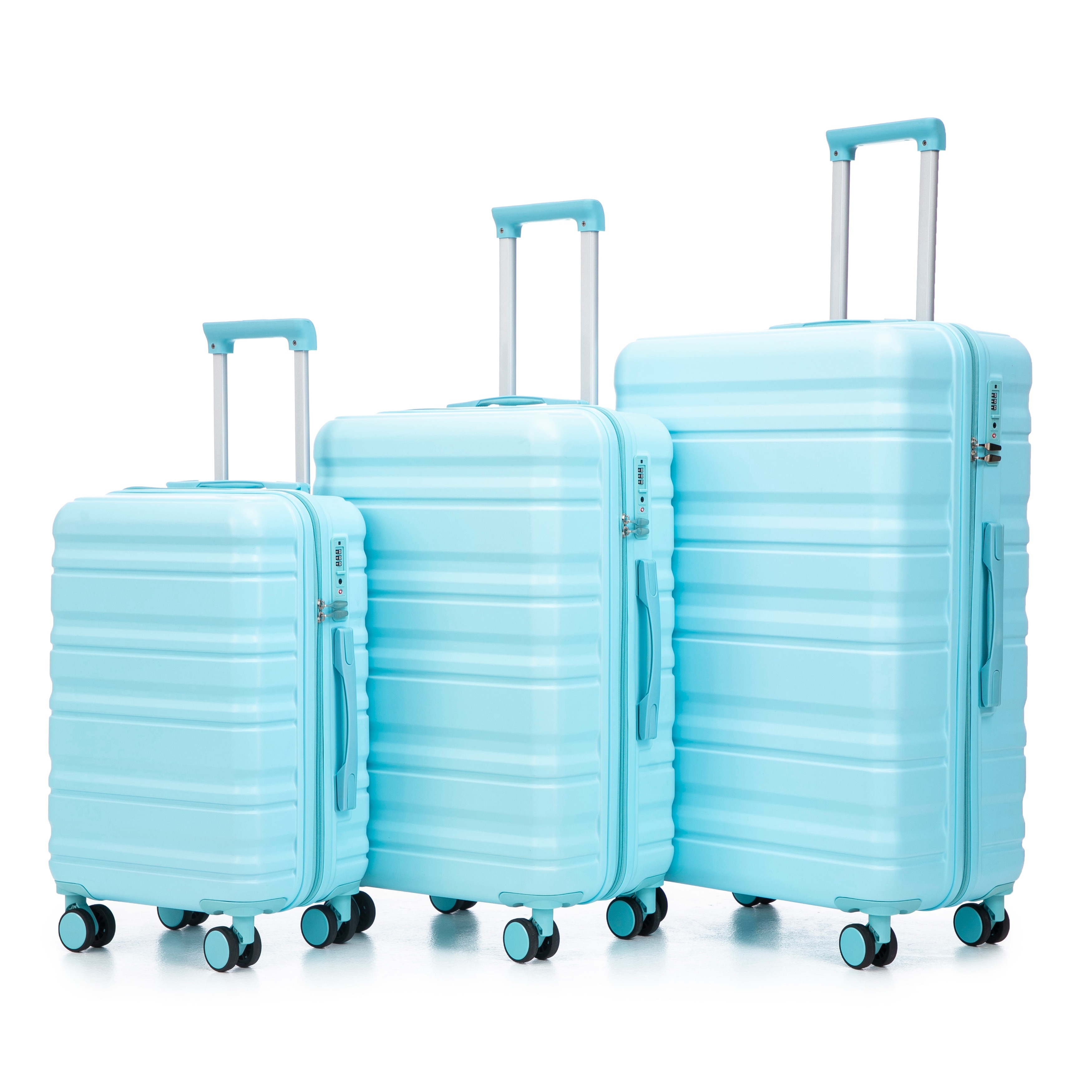 3-Piece, 20, 24, 28-Inch Modern Luggage with Side Handle, Swivel Wheels and TSA Combination Lock, for Boarding Travel, Blue