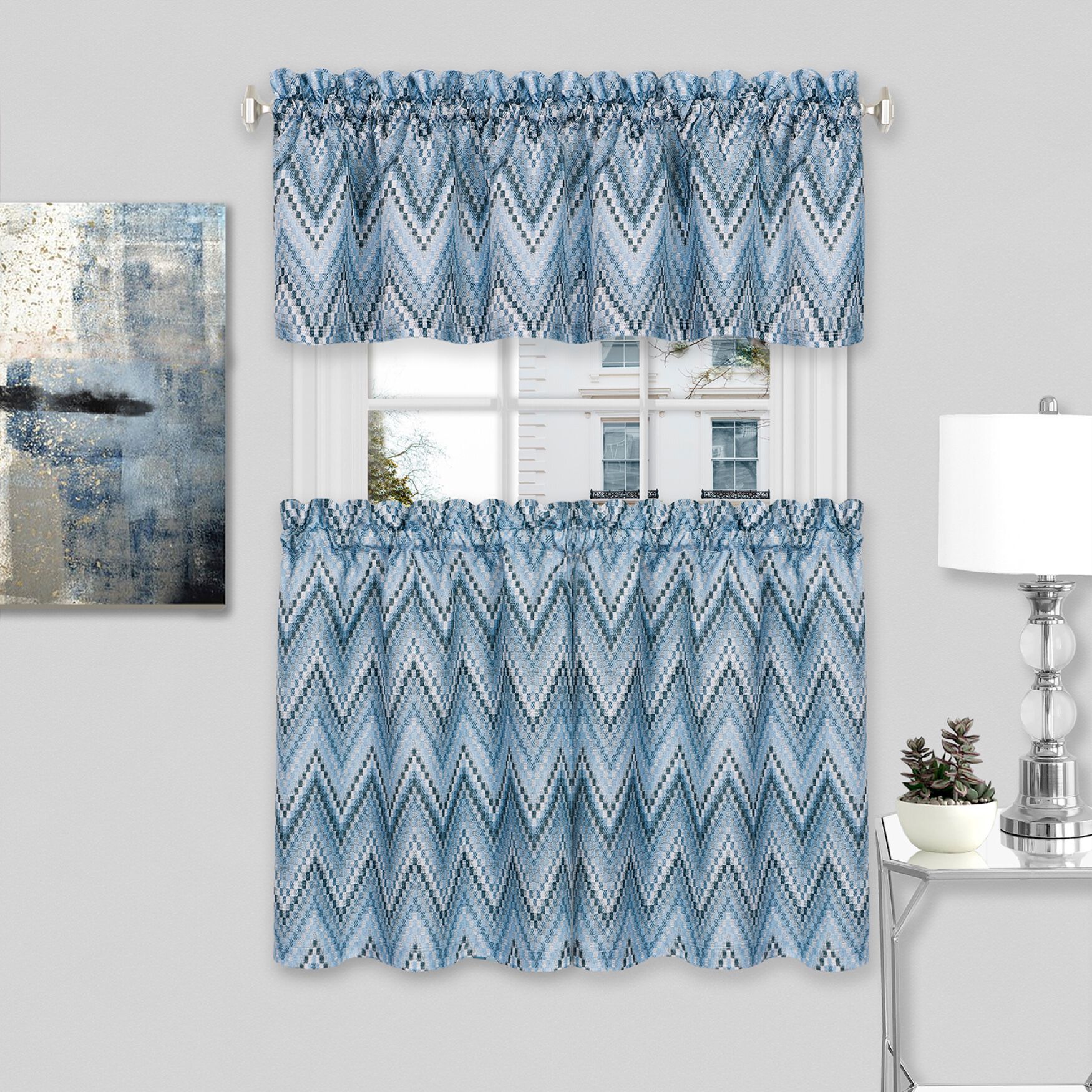 Wide Width Avery Window Curtain Tier Pair and Valance Set by Achim Home Décor in Ice Blue (Size 58" W 24" L)