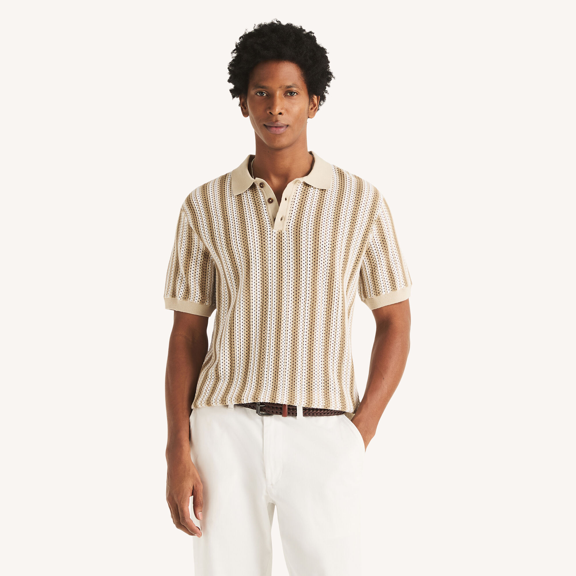Nautica Men's Tipped Textured Sweater Polo 153 (Almond), XL
