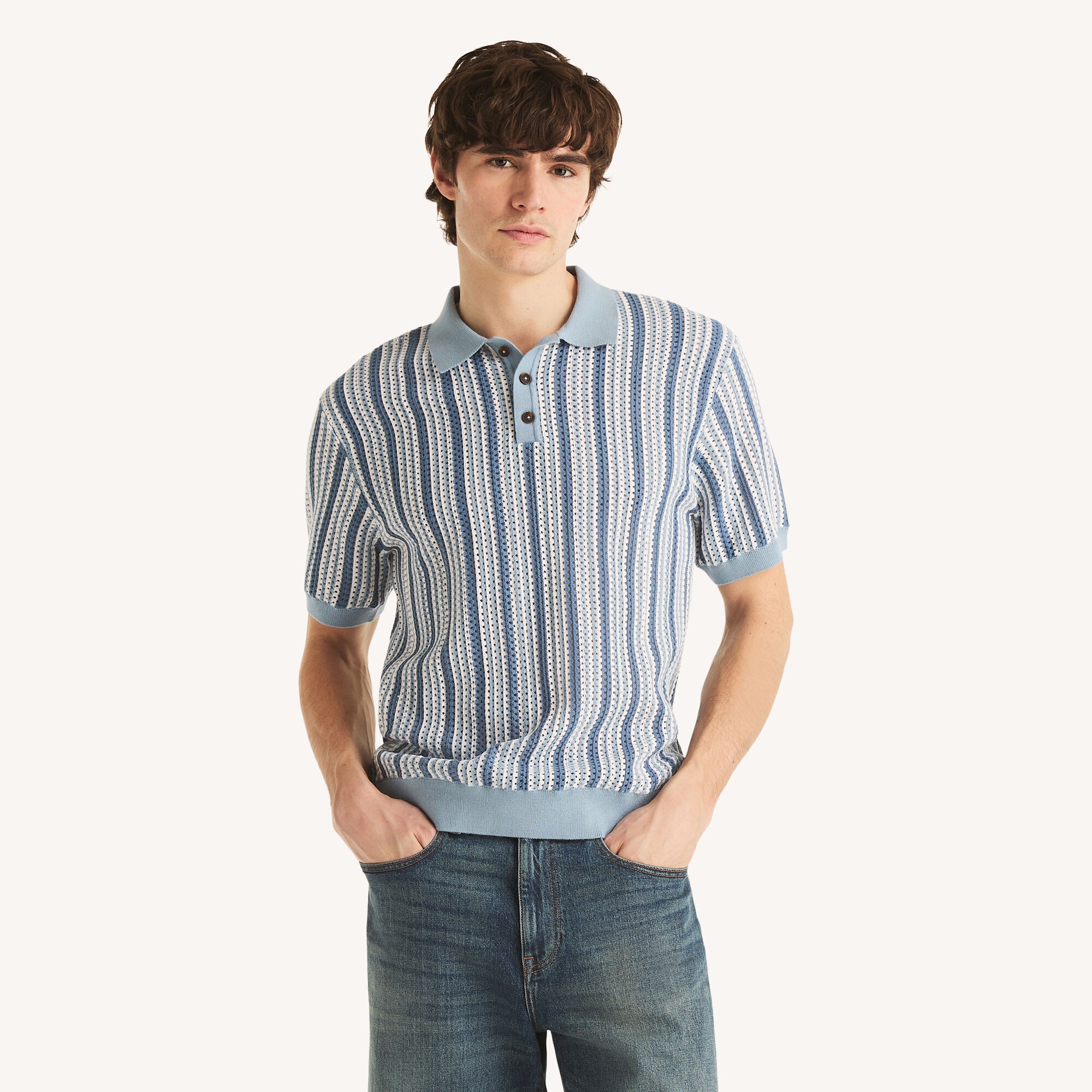 Nautica Men's Striped Sweater Polo 427 (Reef Blue), XXL
