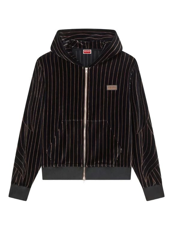 Leaf Stripe Velvet Full Zip Hoodie - Black - KENZO Sweats