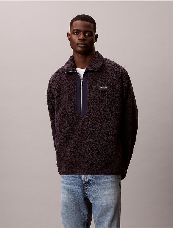 Sherpa Roll Neck 1/4 Zip Sweatshirt - Brown - Calvin Klein Sweats