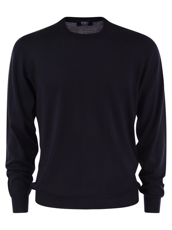 Crew Neck Sweater - Blue - Fedeli Knitwear