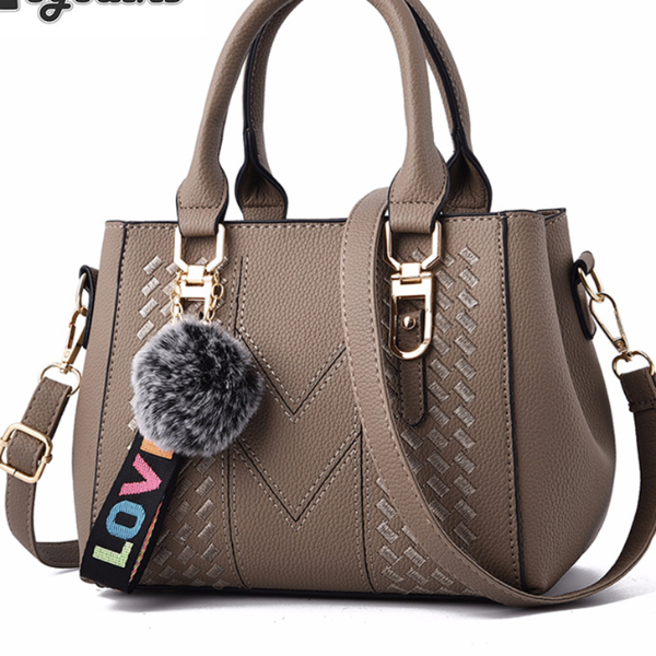 Embroidery Leather Messenger Handbag For Women Stylish, Practical & Trendy Women's Bag With Hair Ball Accent grey