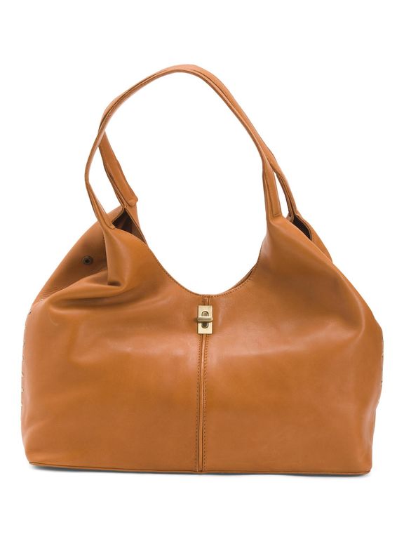 Leather Tulip Smooth Turn Lock Satchel For - Brown - Tj Maxx Satchels