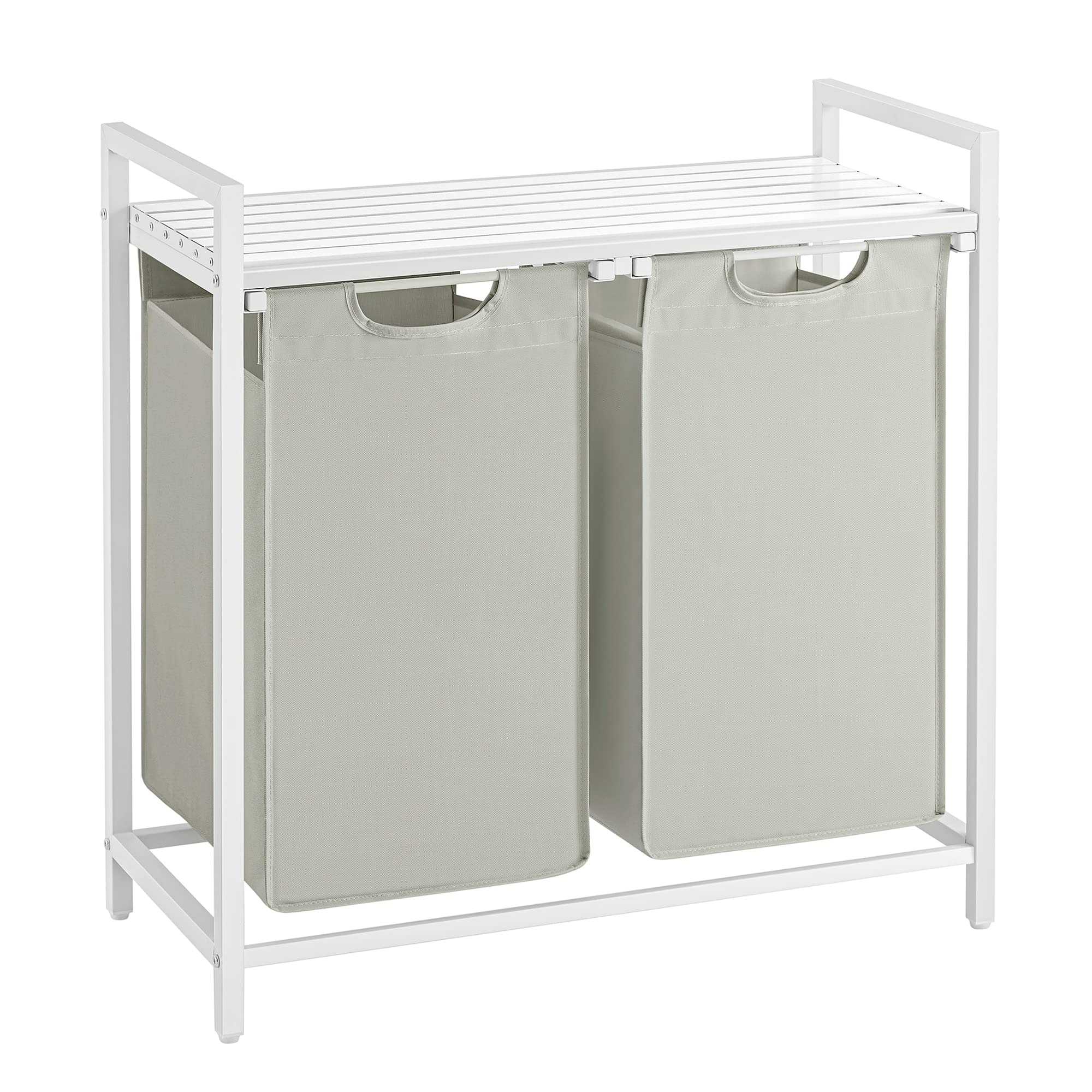 Laundry Hamper, Laundry Basket,Laundry Sorter with 2 Pull-Out and Removable Bags,Shelf,Metal Frame,2 x 12.1 46L 28.8 x 13 x 28.4