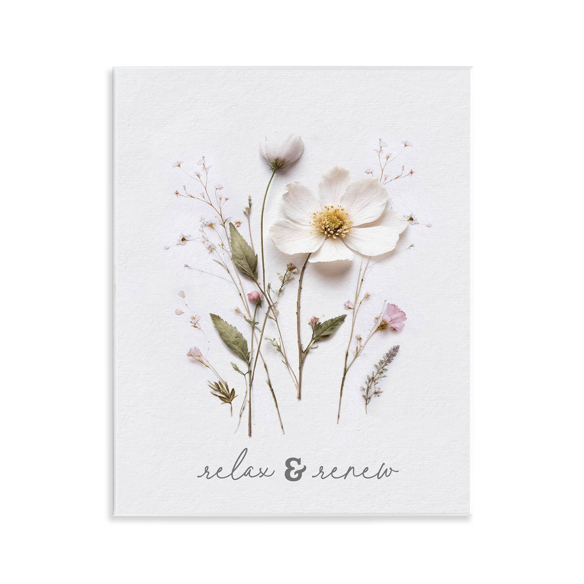 Stupell Pressed Flower Relax & Renew Wall Plaque Design by Lettered and Lined