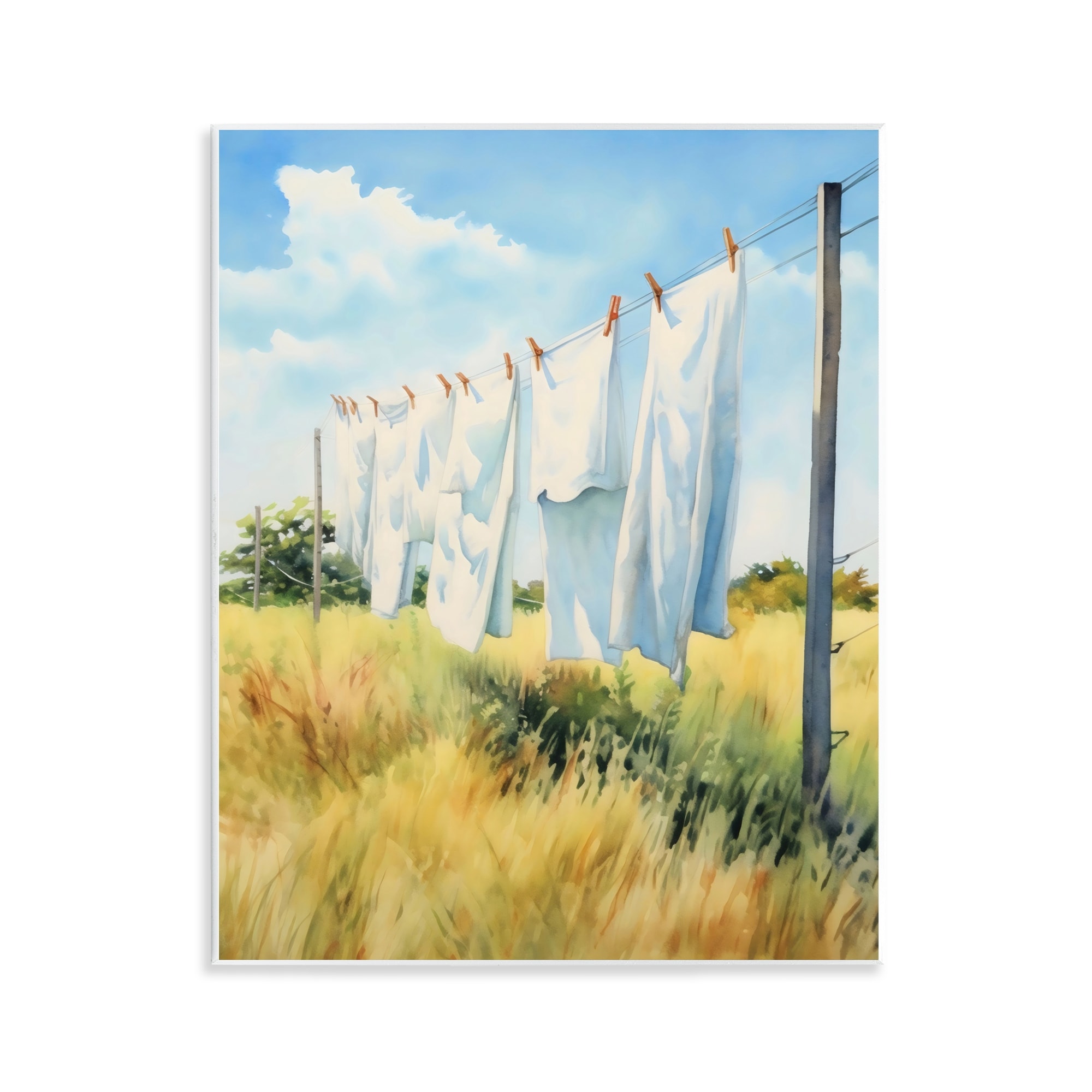 Stupell Clothing Line in Windy Meadow Wall Plaque Art Design By Creative Studio