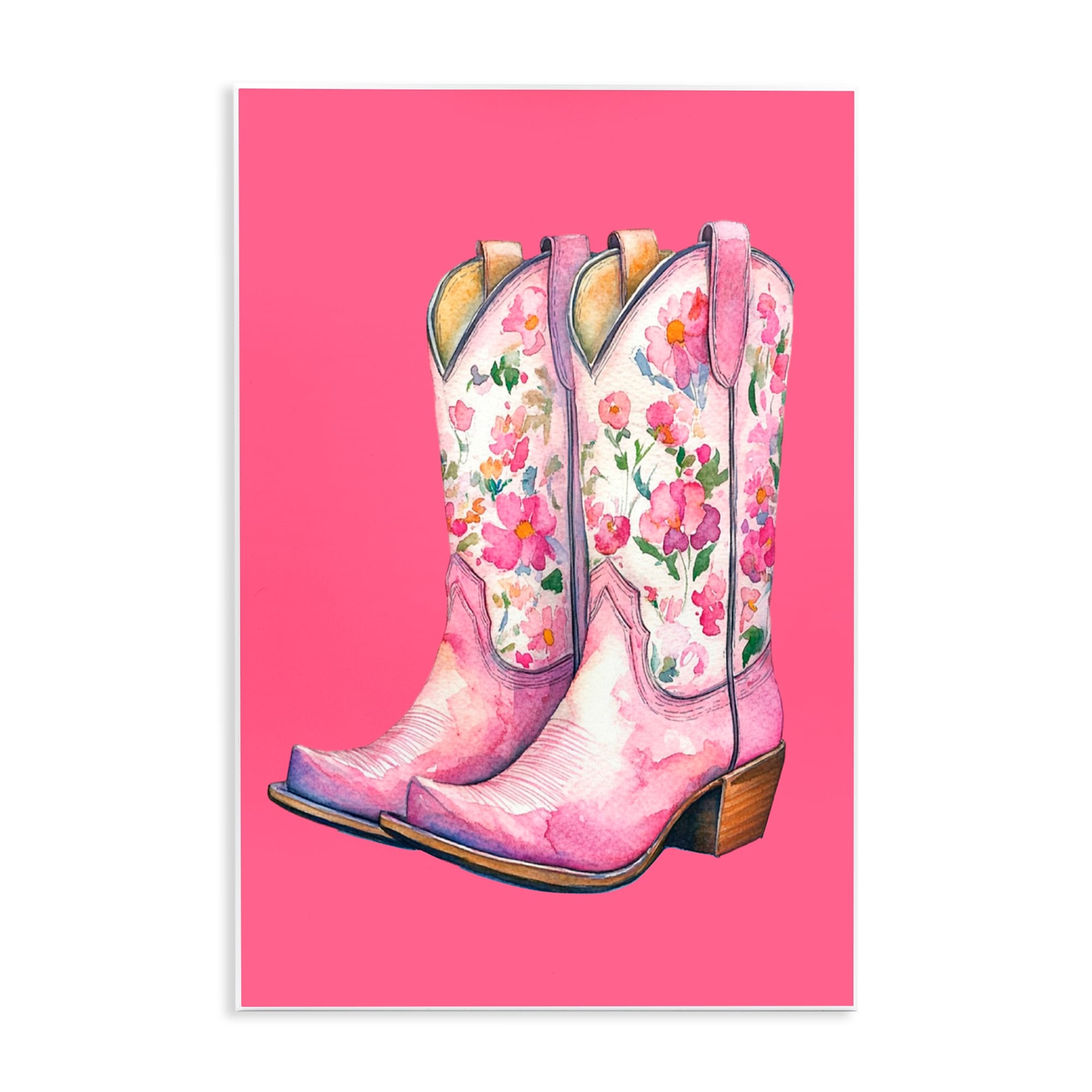 Stupell Glam Cowgirl Boots on Pink Wall Plaque Art Design By Lettered and Lined