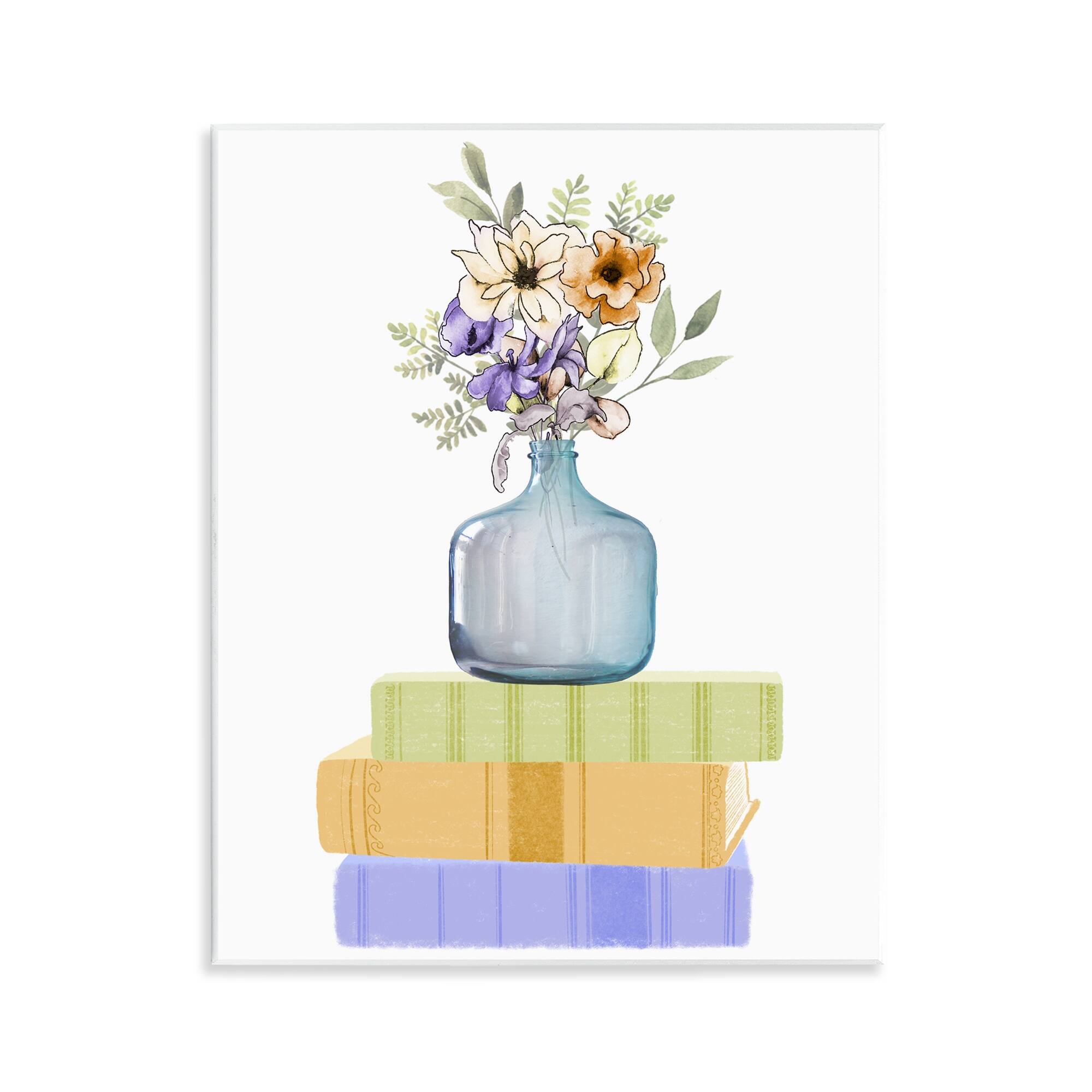 Stupell Flowers Vase On Books Wall Plaque Design by Marcus Prime