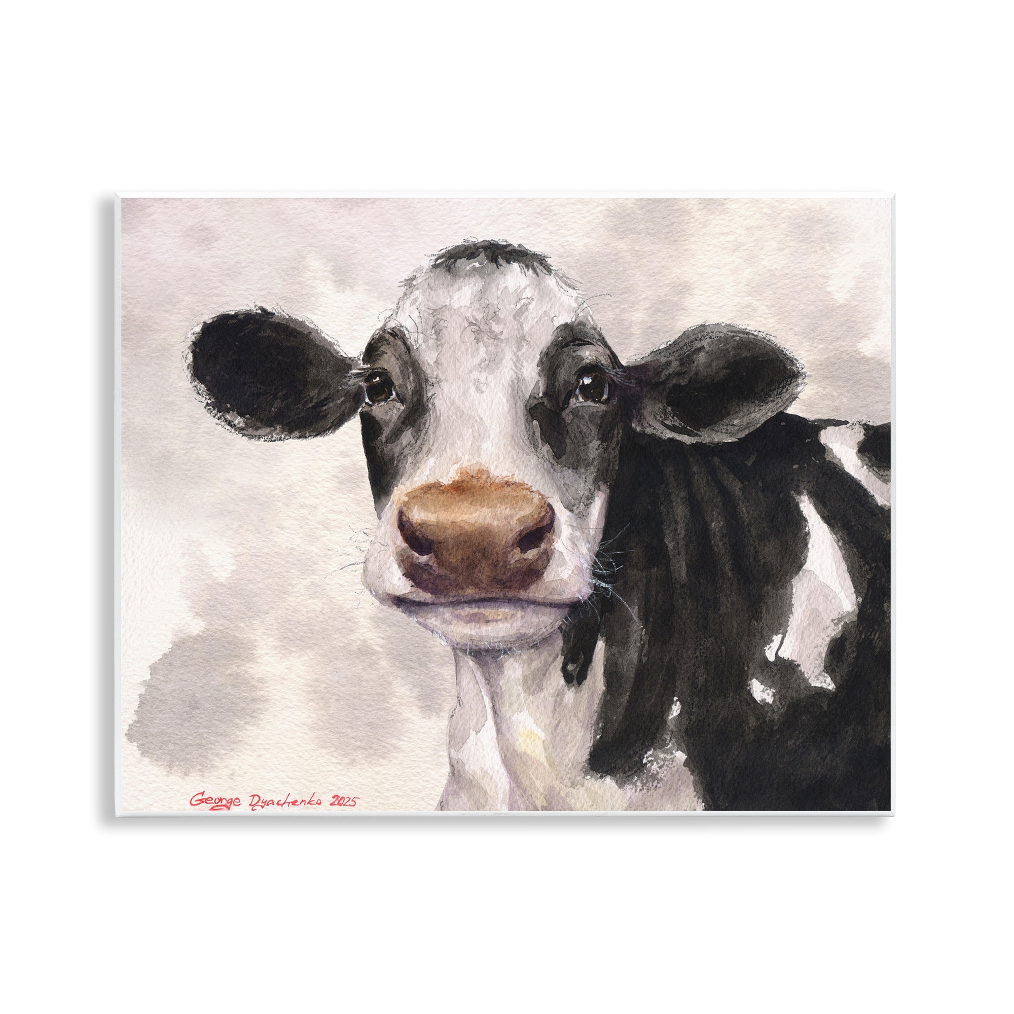 Stupell Cute Cow with Abstract Background Wall Plaque Design by George Dyachenko
