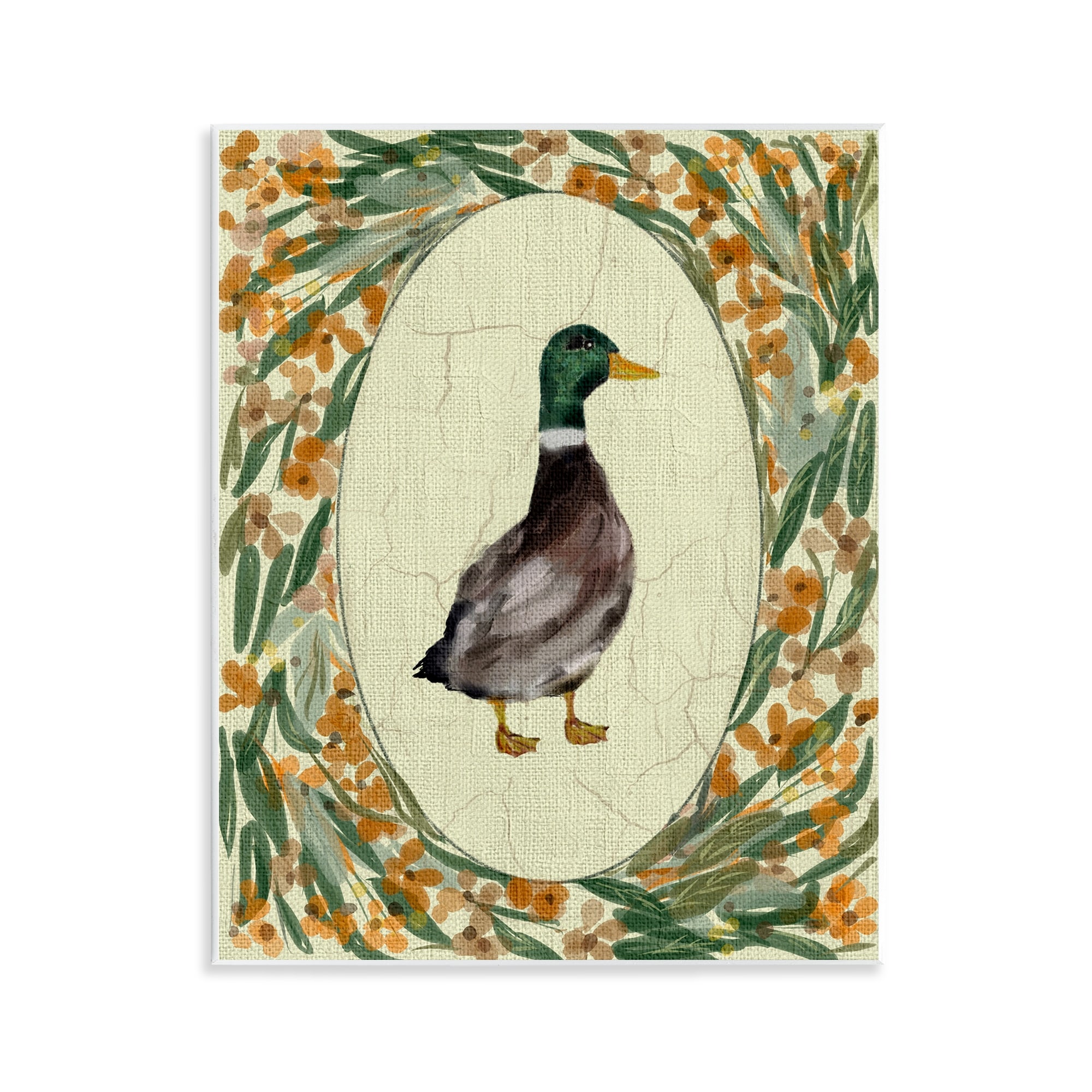 Stupell Duck Portrait with Florals Wall Plaque Art Design By Yen