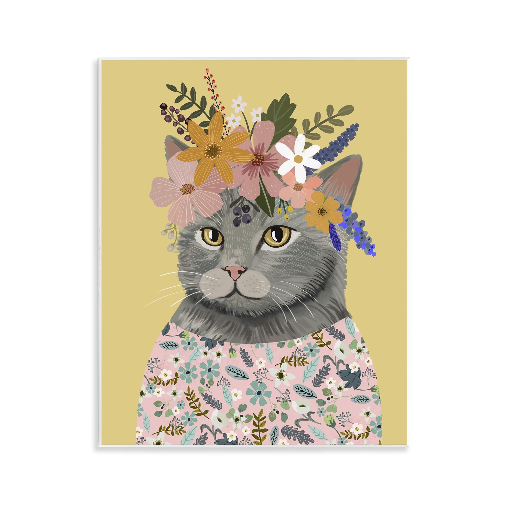 Stupell Spring Cat Floral Portrait Wall Plaque Art Design By Mia Charro