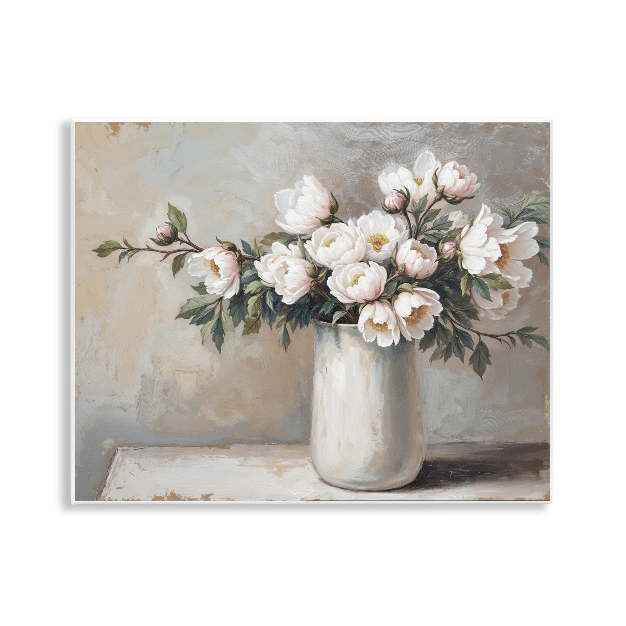 Stupell White Flowers in Vase Still Life Wall Plaque Design by Lettered and Lined