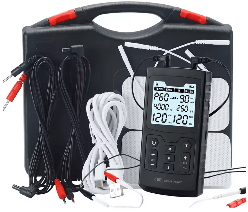 4 in 1 EMS Muscle Stimulator Device High Frequency TENS And Interferential Therapy For Pain Relief And Recovery black