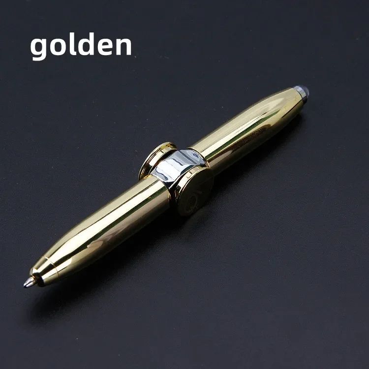 Multifunctional Decompression Gyro Pen, LED Light Ballpoint Pen With Finger Rotate Luminous Spinner gold