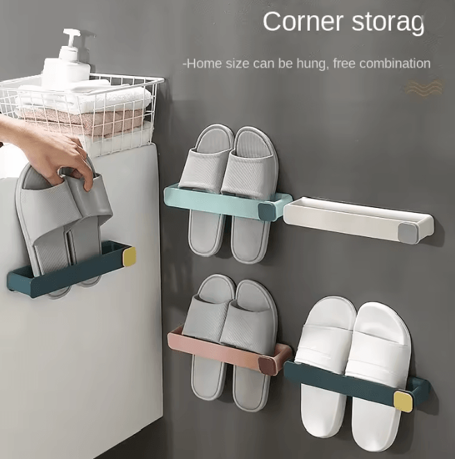 No Punch Bathroom Slipper Shelf Wall Mounted Shoe Rack c