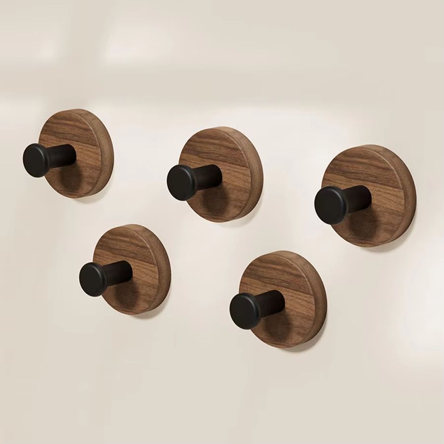 Walnut Wood Adhesive Door Hook Rack No Drill Wooden Hanger For Home white