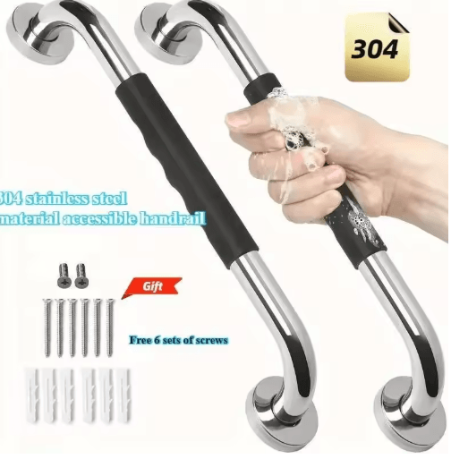 304 Stainless Steel Shower Handle Non Slip Silicone Grip Safety Grab Bar 50 Cm