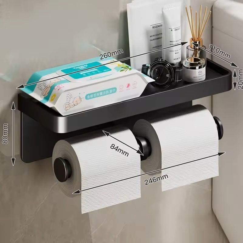 Stainless Alloy No Drill Wall Mounted Toilet Paper & Tissue Holder Rack js A Black Holder