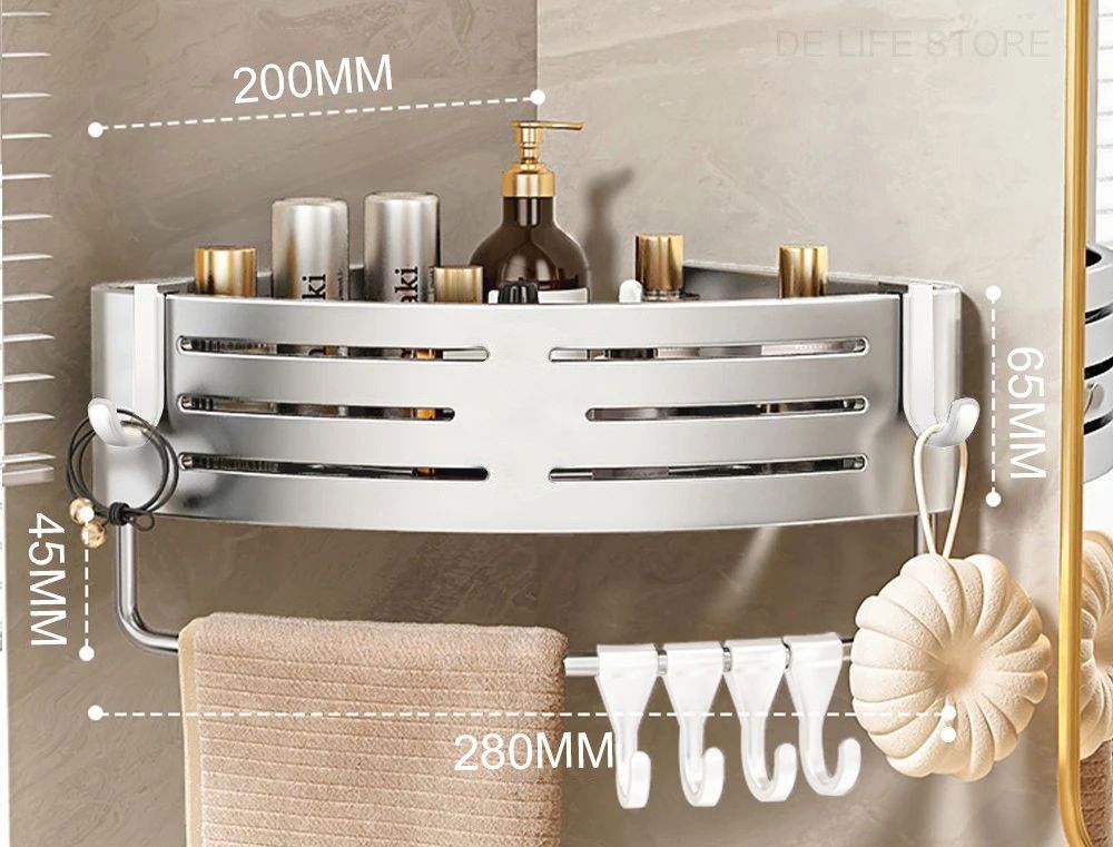 Aluminum Shower Storage Rack, No Drill Corner Shelf With Plastic Hook & Towel Bar For Bathroom silver With Rod